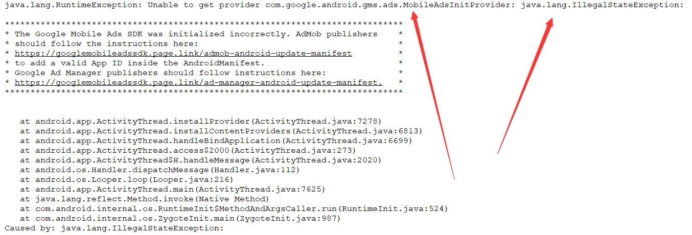 java.lang.RuntimeException: Unable to get provider com.google.android.gms.ads.MobileAdsInitProvider: java.lang.IllegalStateException: