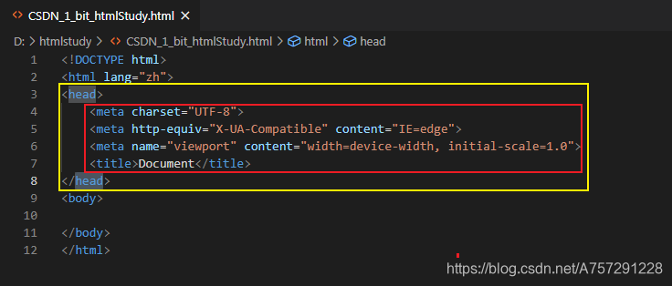 🐶1_bit:我们可以看到 <head> 标签中有 <meta> 标签、<title> 标签。