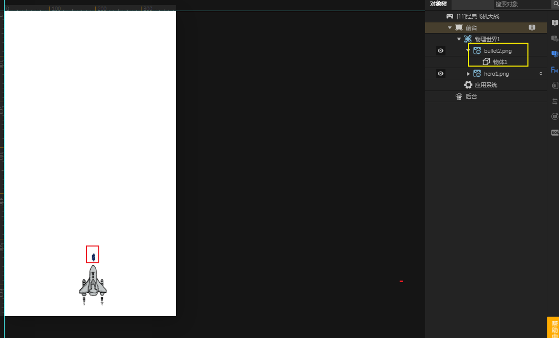 🐶1_bit:之后将飞机图片拖拽至物理世界下层中。