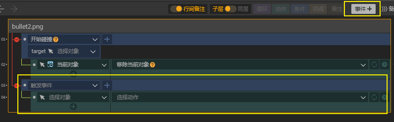 🐶1_bit:对的,这个事件面板顶部就是表示是那个对象的事件。