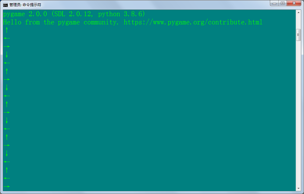 while True:#事件遍历for event in pygame.event.get():if event.type==pygame.QUIT:exit()if event.type==pygame.KEYDOWN:if event.key == pygame.K_RIGHT:print('→')elif event.key == pygame.K_LEFT:print('←')elif event.key == pygame.K_UP:print('↑')elif event.key == pygame.K_DOWN:print('↓')screen.blit(bg,(0,0))screen.blit(hero,(heroX,680))pygame.display.update()