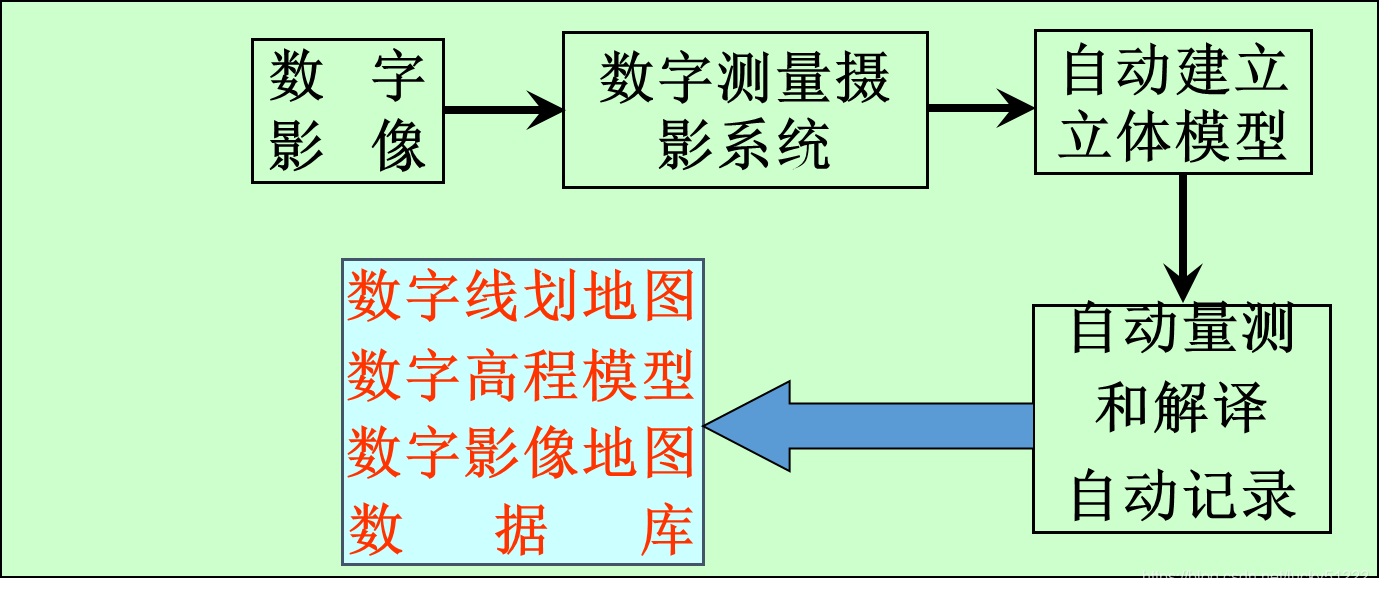 基于摄影测量的基本原理,通过对所获取的数字/数字化影像进行处理,自动(半自动)提取被摄对象用数字方式表达的几何与物理信息,从而获得各种形式的数字产品和目视化产品