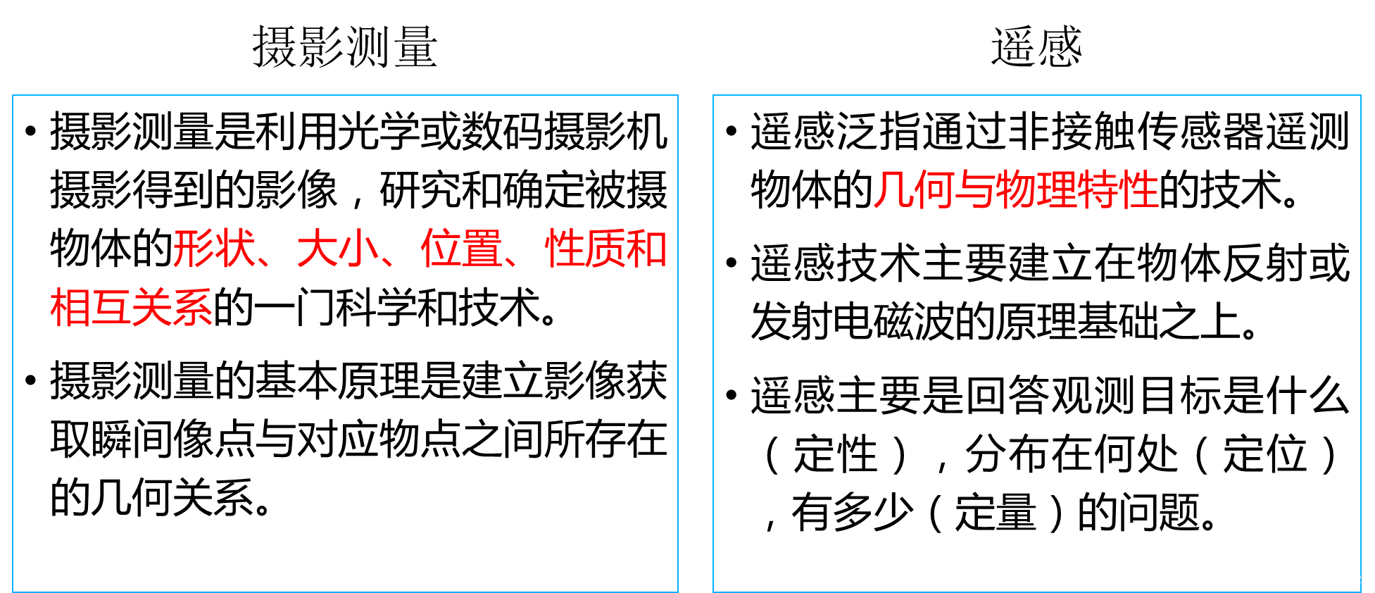 1988年国际摄影测量与遥感协会(ISPRS)在日本京都第16届大会上定义:摄影测量与遥感是对非接触传感器系统获得的影像及其数字表达进行记录、量测和解译,从而获得自然物体和环境的可靠信息的一门工艺、科学和技术。