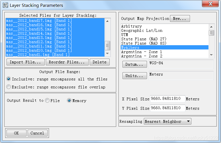很多场合下需要做波段合成,比如波段432合成赋予红绿蓝,构造标准假彩色等等。合成后的文件通常包含多个单波段文件,在Envi中使用layer stacking工具将多个单波段数据合成为一个文件,如下所示: