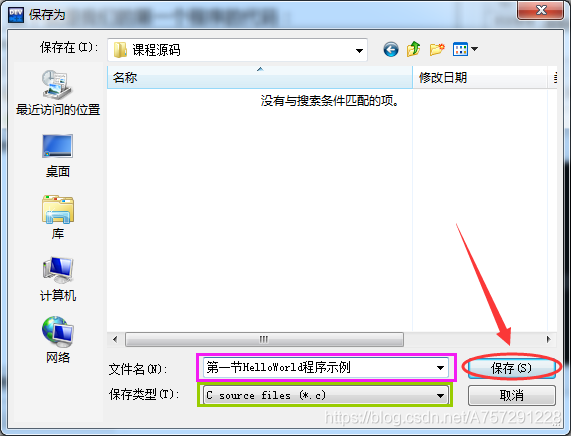 🐰小C:接下来点击工具栏中的运行按钮会出现保存位置的选项框,你选择你要保存的位置就可以了,选择文件的保存类型是C语言文件,之后将自动运行你编写代码后生成的程序。