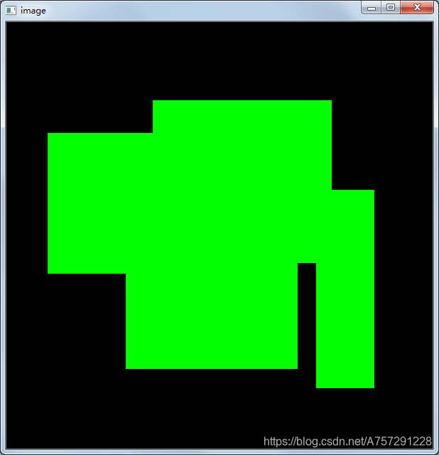 如上代码中为什么起始绘制点是sx与sy呢?那是因为我们按下了鼠标左键后的那个点是绘制起始点,从那个点开始绘制矩形到当前鼠标移动到的x和y坐标处,这样由于每次都覆盖掉原来的图像造成一种错觉,就是在拖拽进行绘制图像,并且进行填充,颜色为(0,255,0)。由于绘制状态不能一直开启,若直接进入了按下左脚与移动时由于保留了上次绘制的绘制开启,那么会造成初始绘制点的丢失,所以我们还需要判断当鼠标左键释放弹起后把绘制状态改为Fasle。代码如下: