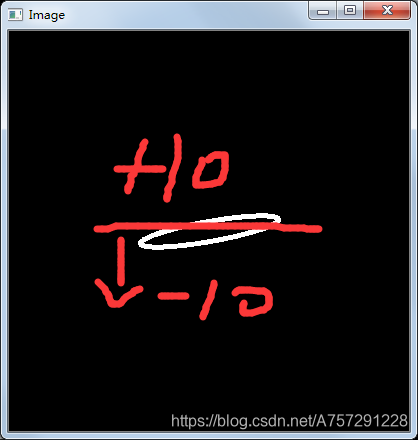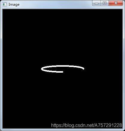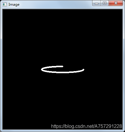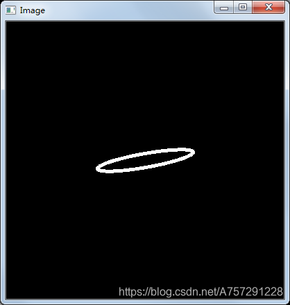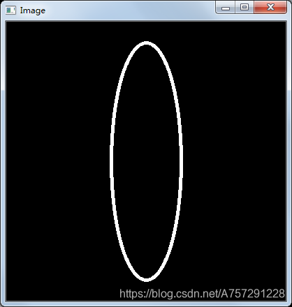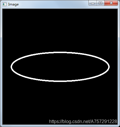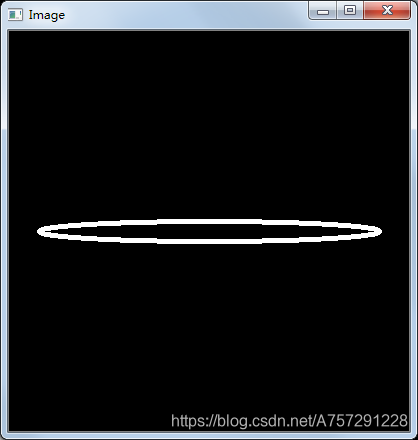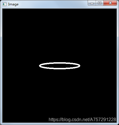 其中(200, 200)为圆心坐标,(170, 50)为长短轴,0, 0为旋转角度以及起始角度,360为终止角度。颜色和粗细分别为(255, 255, 255)以及3.我们我们先查看当前绘制出来的图形是什么样子的,结果如下: