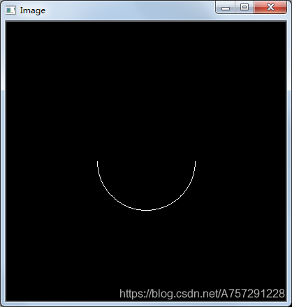 cv2.ellipse(img, (200, 200), (70, 70), 0, 0, 180, (255, 255, 255), 1)