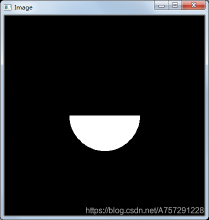 cv2.ellipse(img, (200, 200), (70, 70), 0, 0, 180, (255, 255, 255), -1)