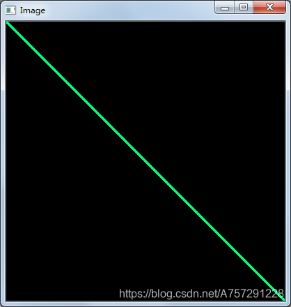 以上使用line方法,传入img表示在img图片上进行绘图,绘图的起始点位置为(0,0),终点位置是(400,400),然后绘制的颜色纯白色(255,255,255),线段粗细为2个单位。我们来看一下绘制的效果: