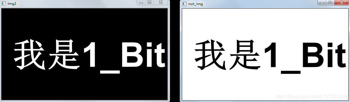 取反运算非常简单,就是黑的边白,白的变黑;当然这样说不严谨,但是却很好反应了取反这个操作的结果;例如0取反则是1,1取反则是0。取反使用bitwise_not方法,bitwise_not方法接收一个图片参数。以下方法依旧使用名为1bit的图片。图片为了方便查看在代码中显示了原图内容。