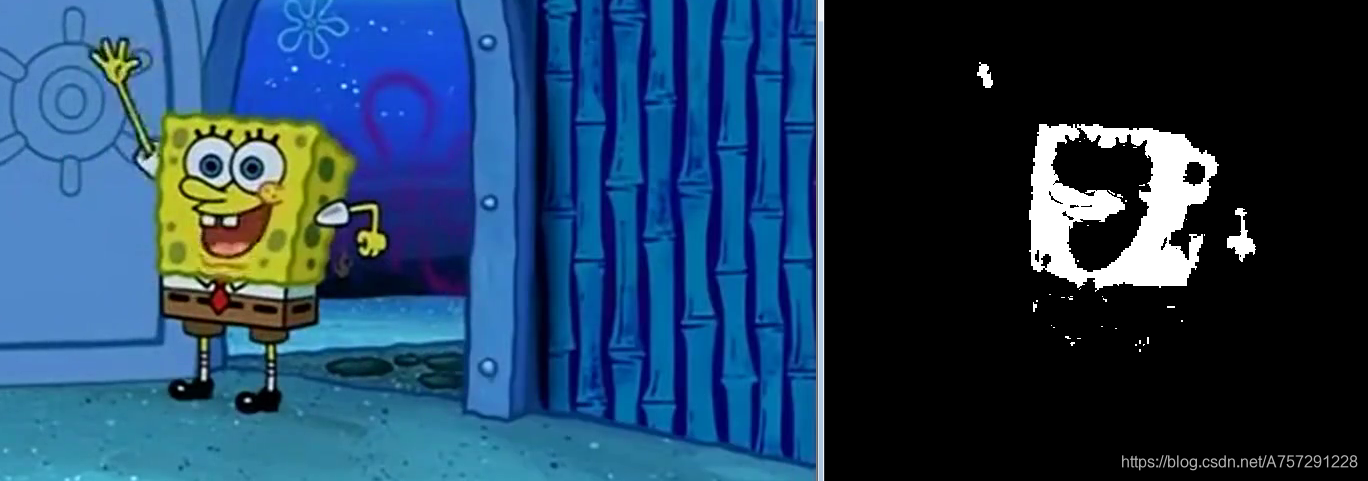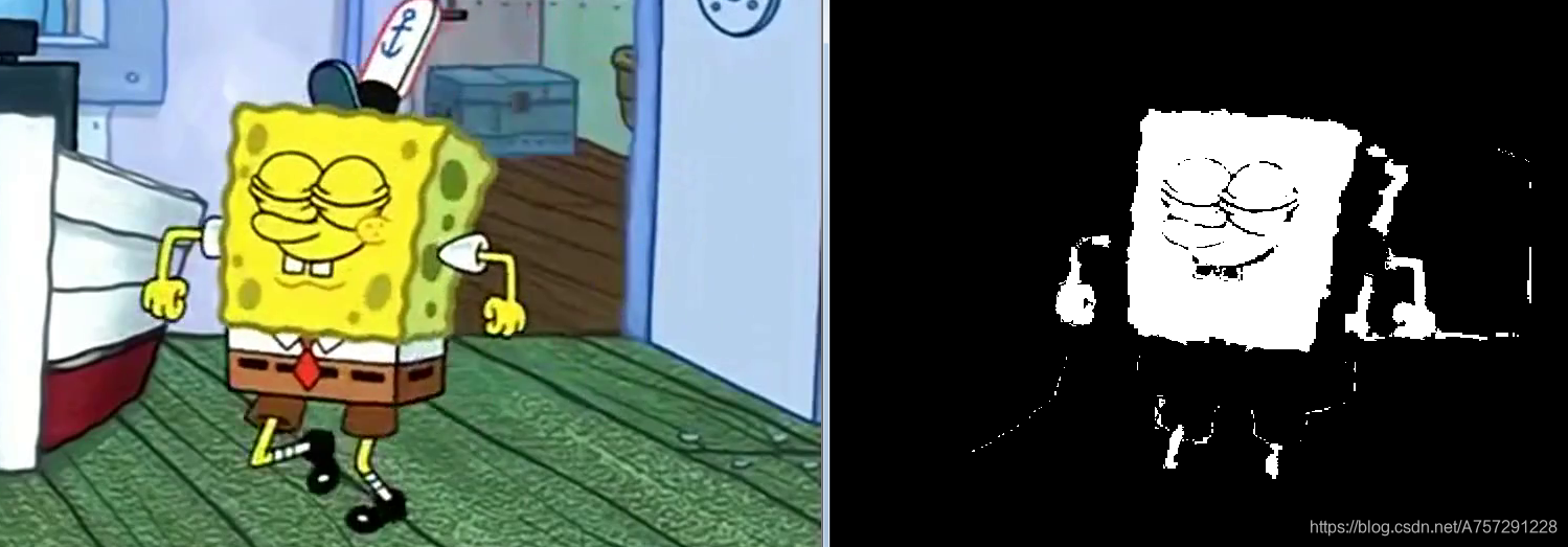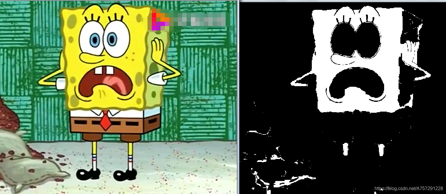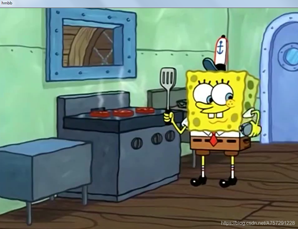 当我们运行代码后,出现两个窗口,有一个窗口将对视频进行捕获内容,并且很好的捕获到了视频中的海绵宝宝。