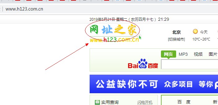 1)比如我们访问www.hao123.com.cn这个网站,我们首先打开wireShark,开启抓包,然后用浏览器访问这个网站,页面效果如下,我们现在需要抓这个“网址之家”这个图片。