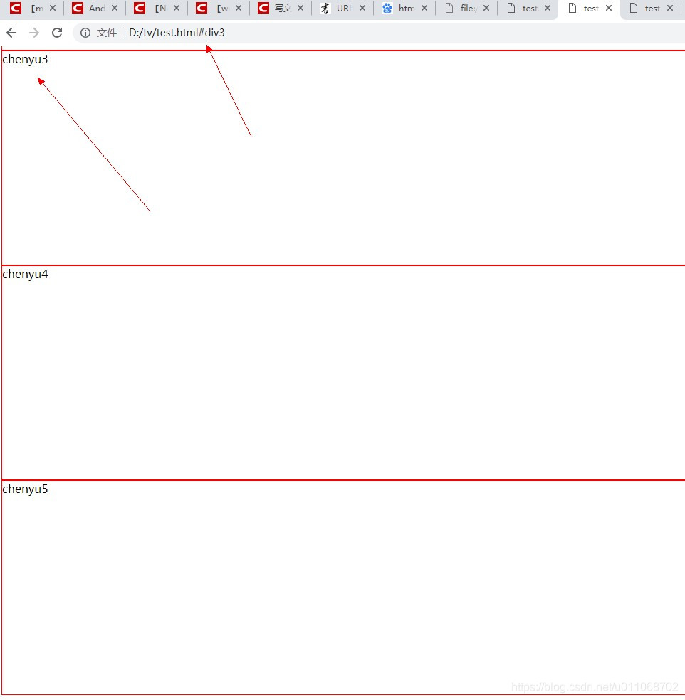 接下来我们测试携带#的链接,比如file:///D:/tv/test.html#div3
