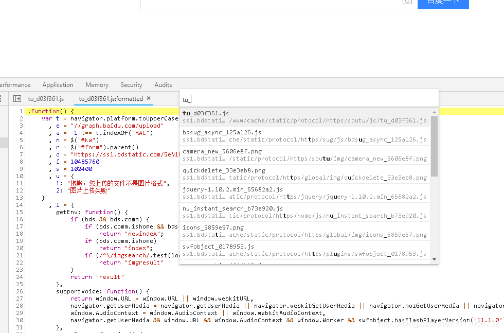 我们分析前端代码的时候,需要快速定位某个js文件,然后查看里面的源代码