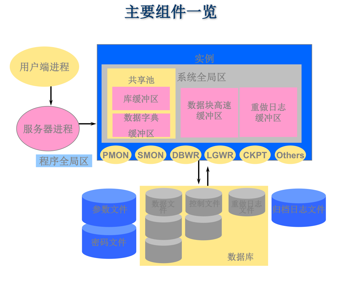 - Oracle系统体系结构由三个部分组成:**实例、物理结构和逻辑结构**