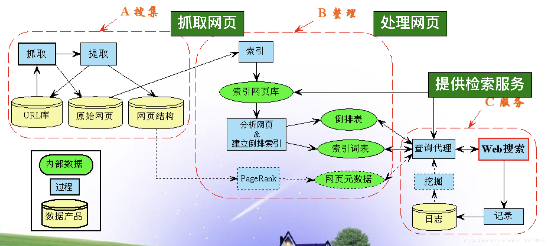 搜索引擎抓到网页后,还要做大量的预处理工作,才能提供检索服务。其中最重要的是提取关键词,建立索引文件。其他预处理工作包括去除重复网页、分词、判断网页类型、分析超链接、计算网页重要度/丰富度等。