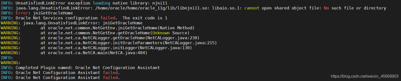 提示Oracle NetConfiguration Assistant failed,原因是找不到libaio.so.1