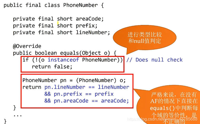 3.外部观察者角度:对两个对象调用任何相同的操作,都得到相同的结果,则认为两对象等价。