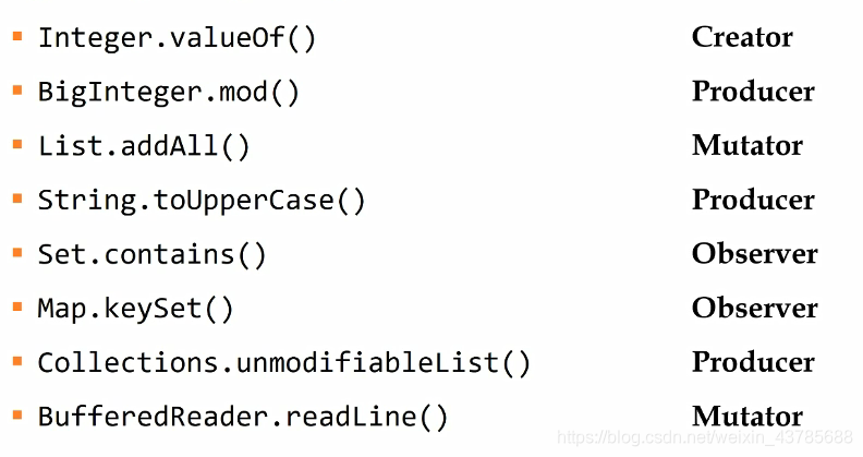 2.抽象类型的方法分类:构造器、生产器、观察器、变值器。