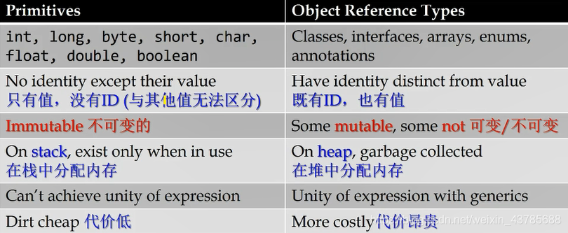 1.数据类型:基本数据类型和对象数据类型的对比。