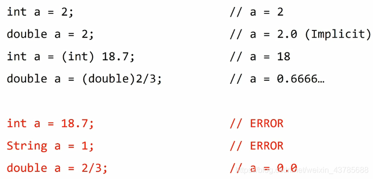 3.静态检查:在不运行程序的前提下的检测。Java是一种静态类型语言,所有变量的种类在编译阶段已经明确。在Eclipse中,静态检测在写代码的时候就已经进行,在不合法的位置会用标记指明。静态类型检查可以在编译阶段发现错误,避免将错误带入运行阶段,可以提高程序的正确性和健壮性。