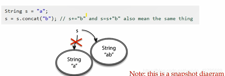 String类是不可变类的一种。如果要改变一个String对象,则需要将引用修改后的存储空间。