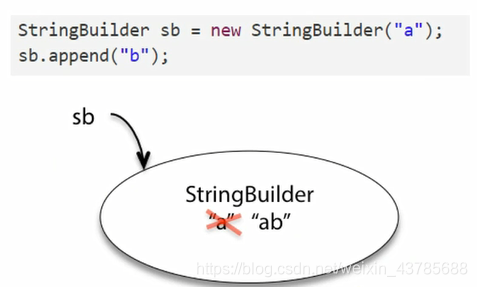 StringBuilder是一种可变类。如果改变一个StringBuilder对象,则对原本存储区域的内容修改即可。