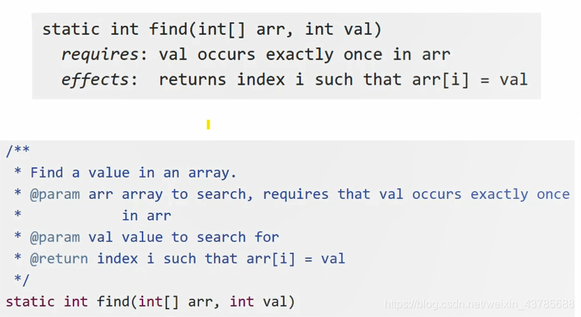 2.规约不包括方法具体实现的内容。规约中的方法都是public方法。代码中蕴含的设计决策针对编译器,而规约(注释)的设计决策针对读者。