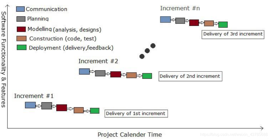 软件完成之前,递增地被设计、补充和测试。在这种模型下,系统被分层许多小的开发项目,然后合并生成最终的系统。首先处理最高优先级要求,一旦增加的部分被开发出来,一部分的需求就被冻结了。