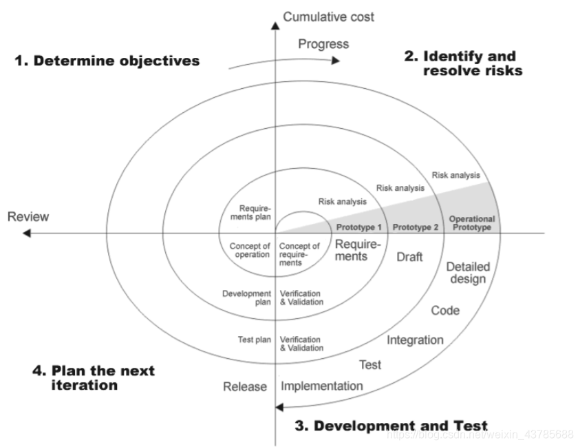 是一种风险驱动的软件开发模型。基于给定项目的独特风险模式,螺旋模型指导团队采用一个或多个过程模型的元素,如增量、瀑布或进化原型。