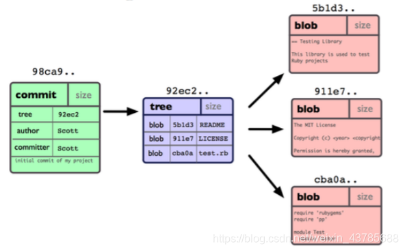 4.每个提交都是整个项目的快照,Git用树节点表示它。对于任何大小合理的项目,大多数文件在任何给定的修订中都不会更改。存储文件的冗余副本是浪费,所以Git不会这样做。相反,Git对象图存储单个文件的每个版本一次,并允许多个提交共享该副本。