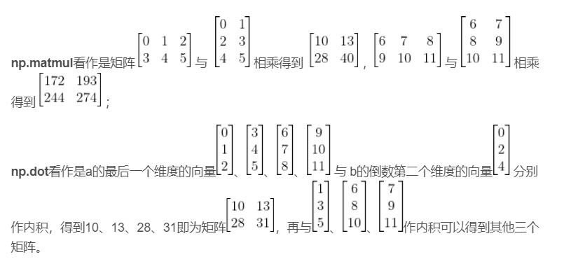 4)a、b是二维及以下array的情况下,np.matmul()与np.dot()效果相同;