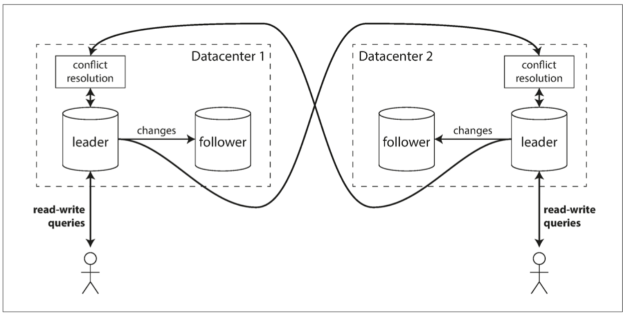 缺点:不同的数据中心可能会同时修改相同的数据,因而必须解决潜在的写冲突。