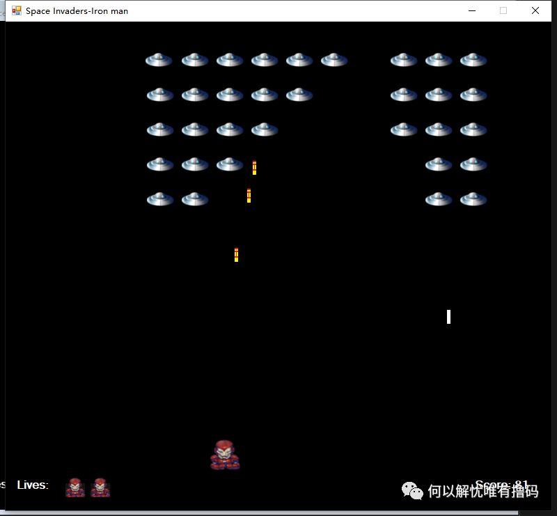 本篇博文也是因《复仇者联盟1》的启发,C#语言实现的一个小游戏,所以游戏命名就叫“钢铁侠VS太空侵略者》了!