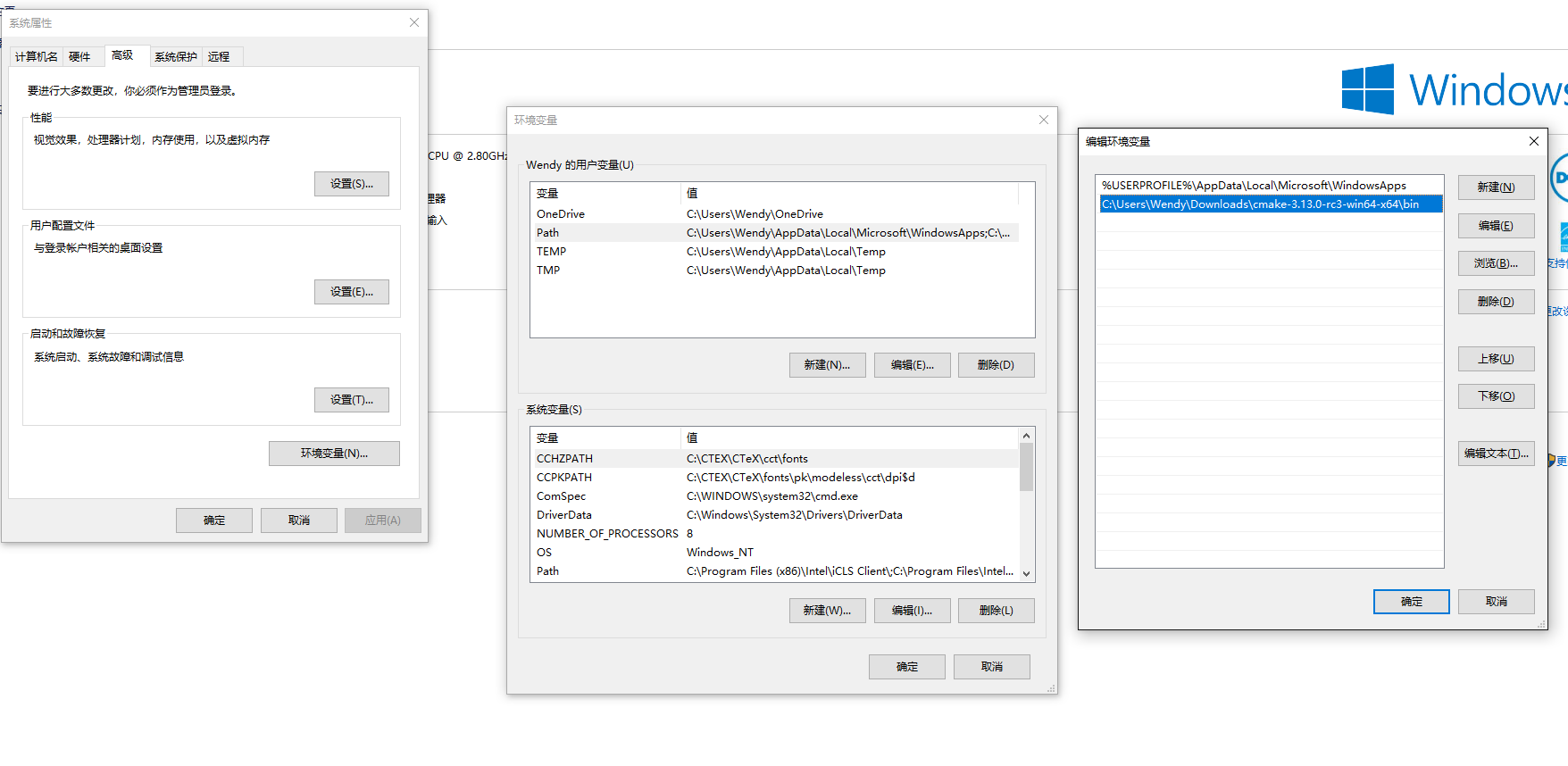 安装后打开控制面板-系统-高级系统设置-环境变量-PATH-编辑-输入cmake.exe的路径即可。