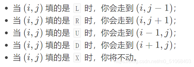 给定一个n∗nn*nn∗n的矩阵,每个点上面都有一个xi,yix_i,y_ixi,yi,表示这个点到xi,yix_i,y_ixi,yi这个点停下,当xi=−1,yi=−1x_i=-1,y_i=-1xi=−1,yi=−1的时候代表这个点不会停下,让你构造一个矩阵,其中填如下字符: