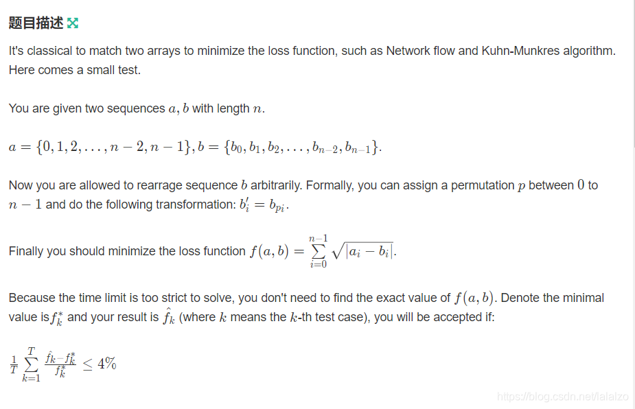 题意就是使得图中的那个式子最小,你的答案不一定是要最标准的,只要平均水平下和标准值的偏差不超过4%就行了。