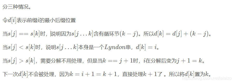 思路:主要还是要理解Lyndon串的算法的整一个过程
