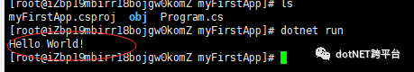 该dotnet命令为您创建一个新的控制台应用程序。该-o参数为新的应用程序创建一个名为myFirstApp的目录。该cd myFirstApp命令将切换到这个新的应用程序目录。
