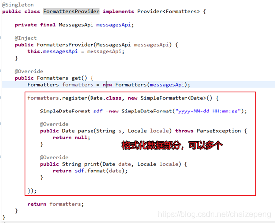 1、编写一个数据格式化的类,这个类实现Provider<Formatters>接口