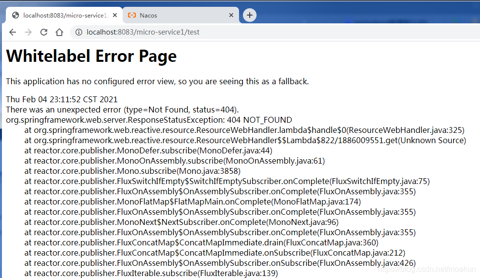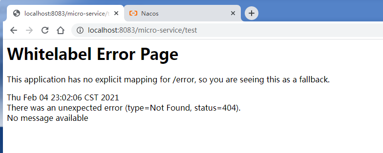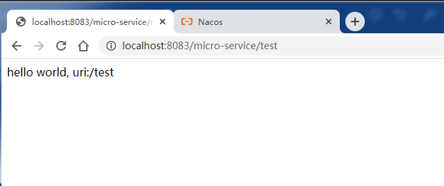 猜测肯定是访问到了micro-service,但为什么没用结果。于是给micro-service服务配置默认路径,才发现原因
