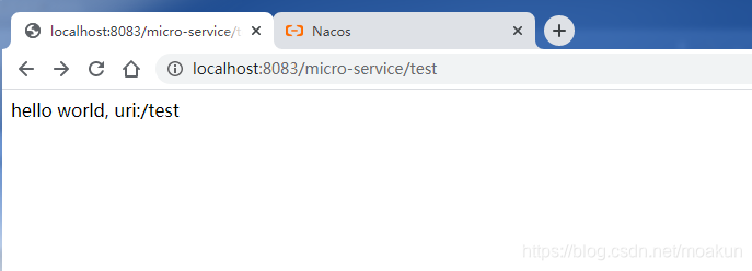 public class TestController {@GetMapping("/test")public String test(HttpServletRequest request){return "hello world, uri:" + request.getRequestURI();}}(3)nacos注册中心