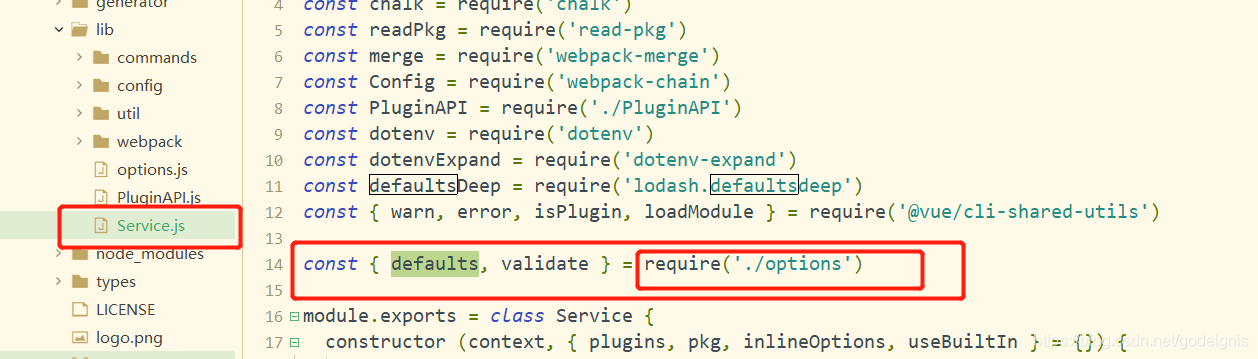 其实我们可以看到,bin下面的vue-cli-service.js文件引用了这个“../lib/Service”这个文件