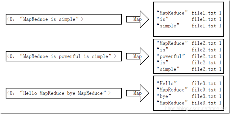 单词和URL组成key值(如"MapReduce:file1.txt"),将词频作为value,这样做的好处是可以利用MapReduce框架自带的Map端排序,将同一文档的相同单词的词频组成列表,传递给Combine过程,实现类似于WordCount的功能。
