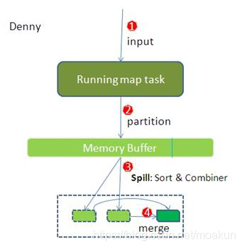 2)写磁盘前,要进行partition、sort和combine等操作。通过分区,将不同类型的数据分开处理,之后对不同分区的数据进行排序,如果有Combiner,还要对排序后的数据进行combine。等最后记录写完,将全部溢出文件合并为一个分区且排序的文件