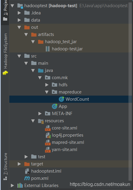 用到的文件有WordCount.java、core-site.xml、mapreduce-site.xml、yarn-site.xml、log4j.properties、pom.xml