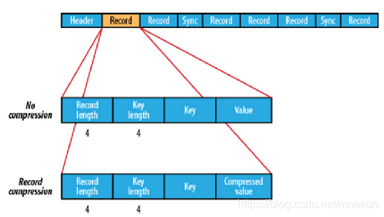 - RecordCompressWriter记录级压缩文件,只压缩值