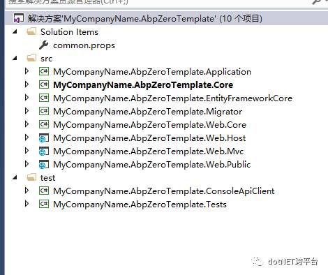 4.MyCompanyName.AbpZeroTemplate.Migrator 数据库迁移工具(关于数据库迁移,后面的博文会讲),用于执行迁移可以再生产环境中使用