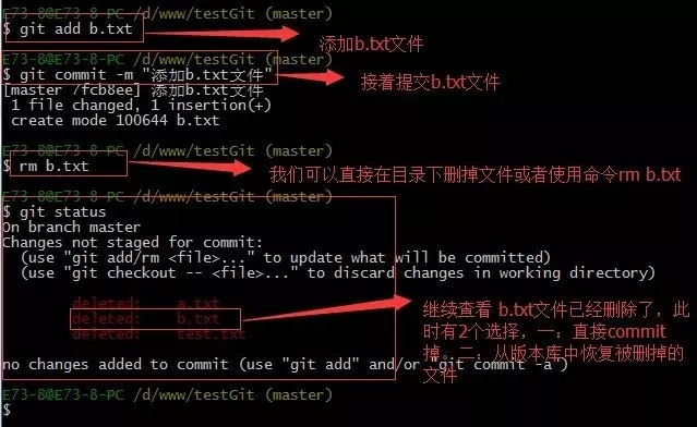 可以使用如下命令 git checkout -- b.txt,如下所示: